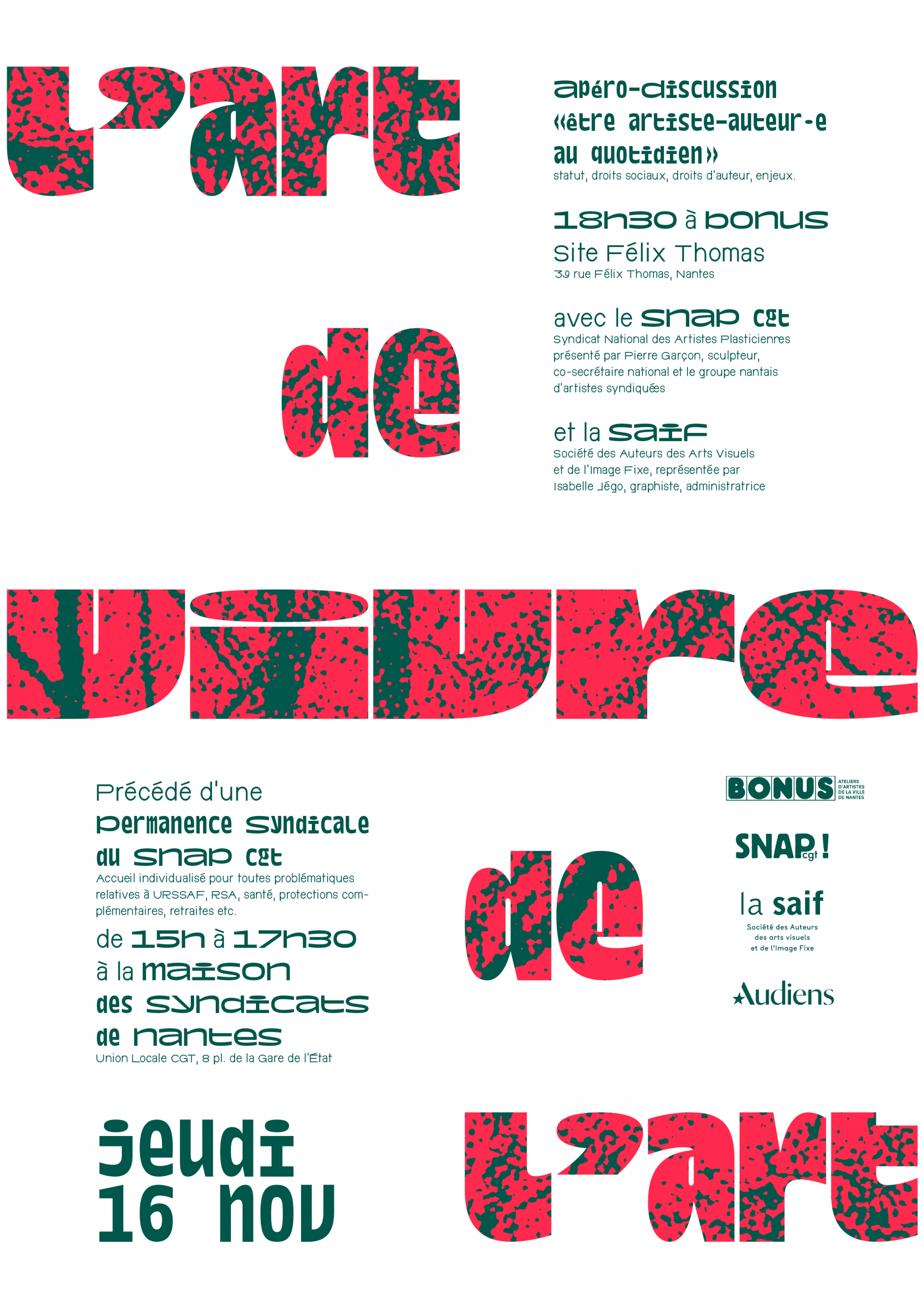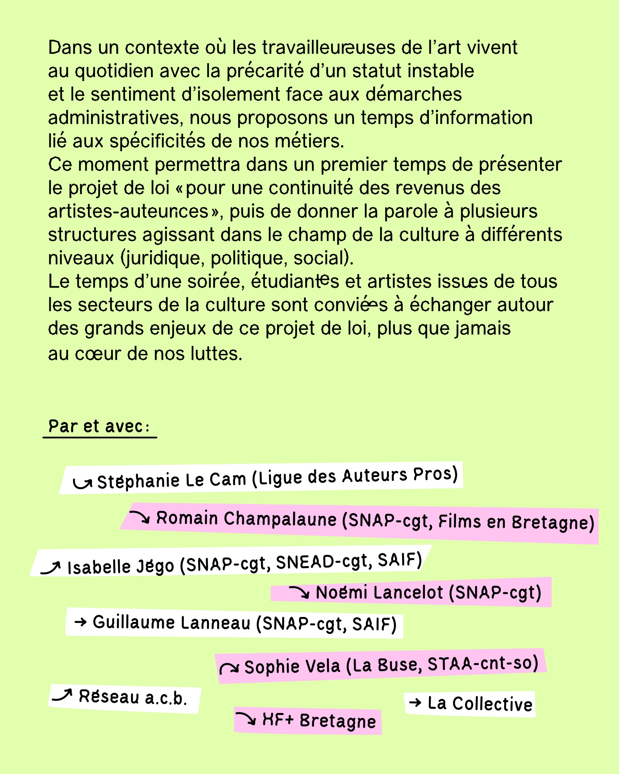 Animé par Vincent BERGERON, artiste-visuel, président de la planque et militant au SNAP cgt