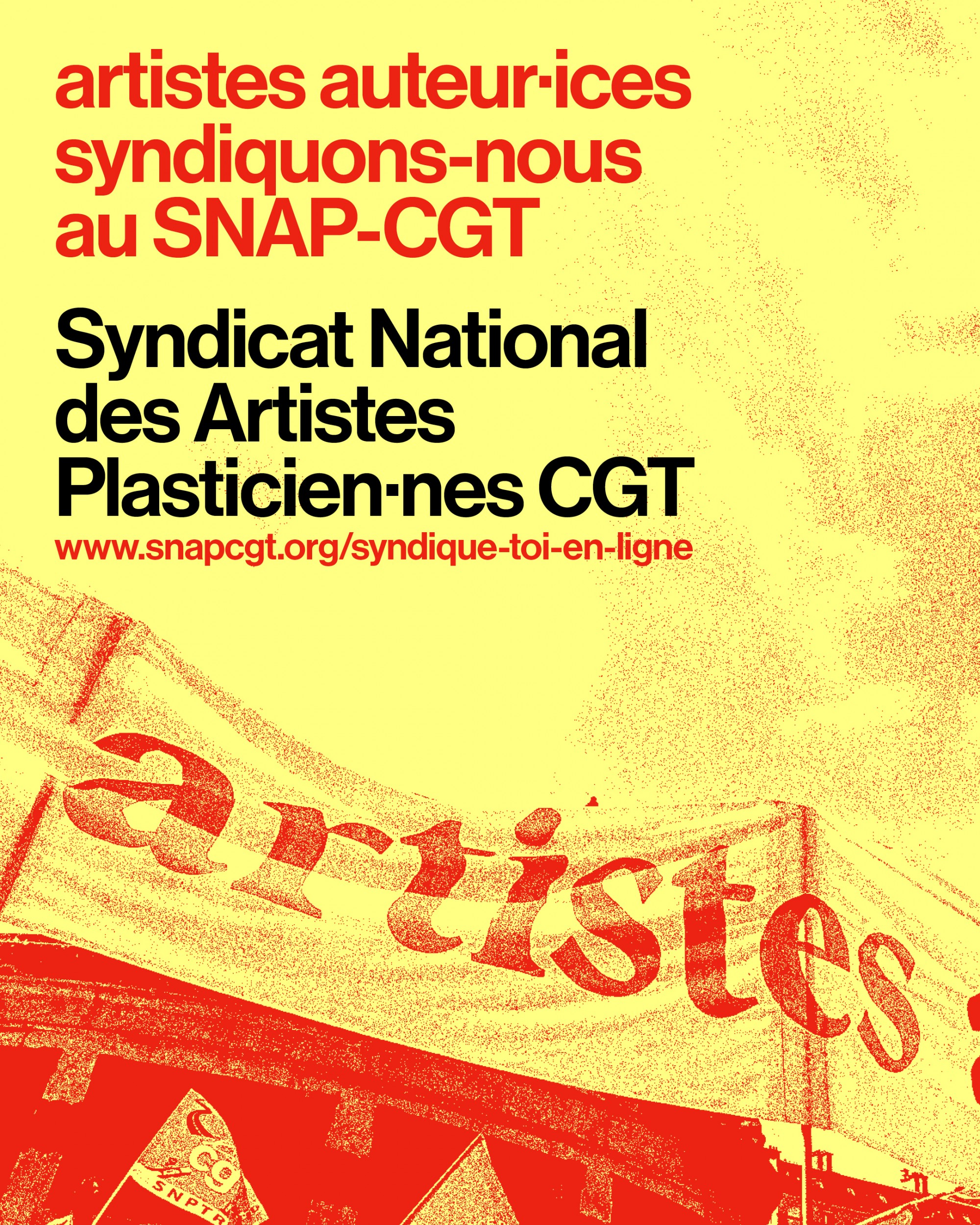 Fondé en 1977, le Syndicat National des Artistes Plasticien·nes cgt, structure syndicale nationale représentative, doit son existence à la volonté d’artistes de s’organiser eux-mêmes, sur l’ensemble du territoire. Il est un pôle de réflexions, de propositions et d’actions voulant contribuer à promouvoir des conditions d’accomplissement des créations plastiques les plus diverses.