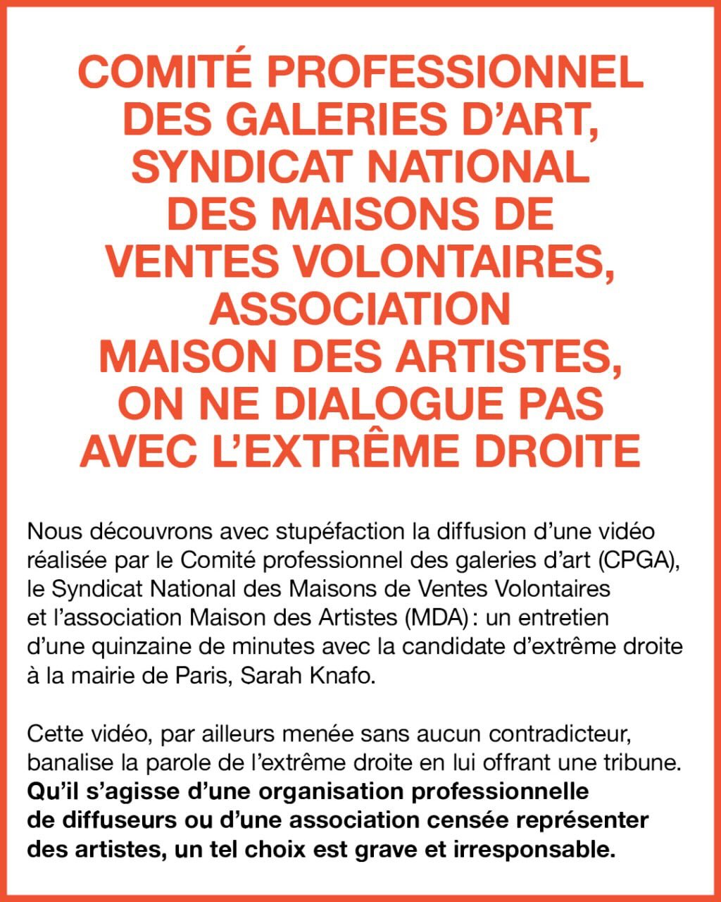 Comme vous le savez, les auteur·ices et professionnel·les de la BD que nos organisations représentent, se sont manifesté·es à plusieurs reprises afin de contester la reconduction de la société 9eArt+ à la gestion du festival d’Angoulême. Ces raisons, nous les avons déjà largement énumérées par le biais de différents communiqués et à travers la pétition d’appel au boycott, puis par le biais de plusieurs communiqués et enfin la tribune publiée le 14/10/2025 dans le journal L’Humanité.