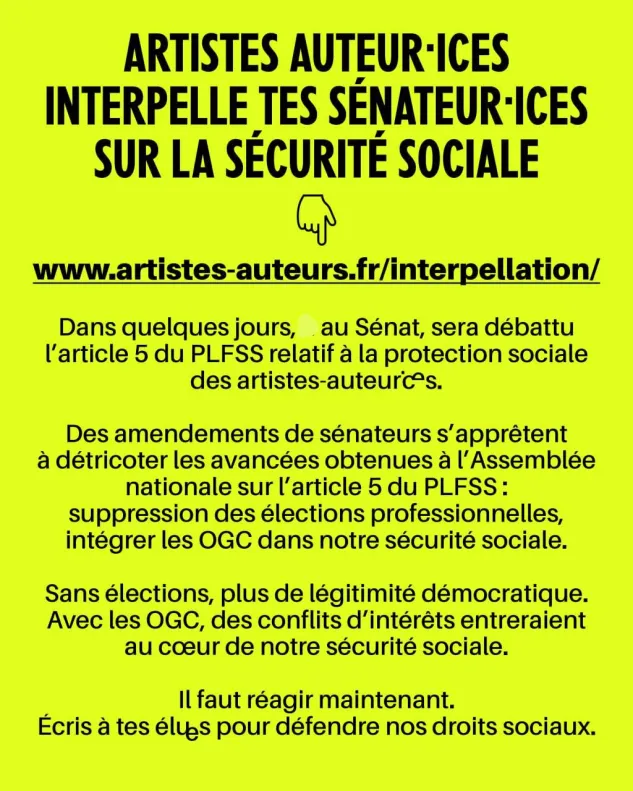 ARTISTES-AUTEURICES INTERPELLE TES SÉNATEURICES SUR LA SÉCURITÉ SOCIALE !