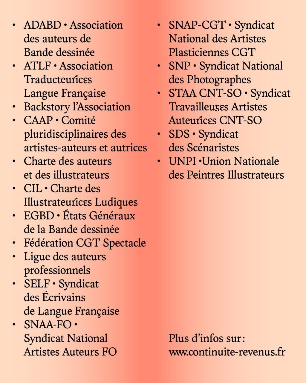 Parce que rien n'est impossible quand on a la force du nombre, nous vous invitons également à contacter et rencontrer les sénateur·rices de votre région pour les encourager à voter la loi pour une continuité de revenus des artistes-auteurices portée par la sénatrice Monique de Marco, pour qu’enfin les artistes auteurices soient reconnu·es comme des travailleur·ses doté·es des mêmes droits que les autres !