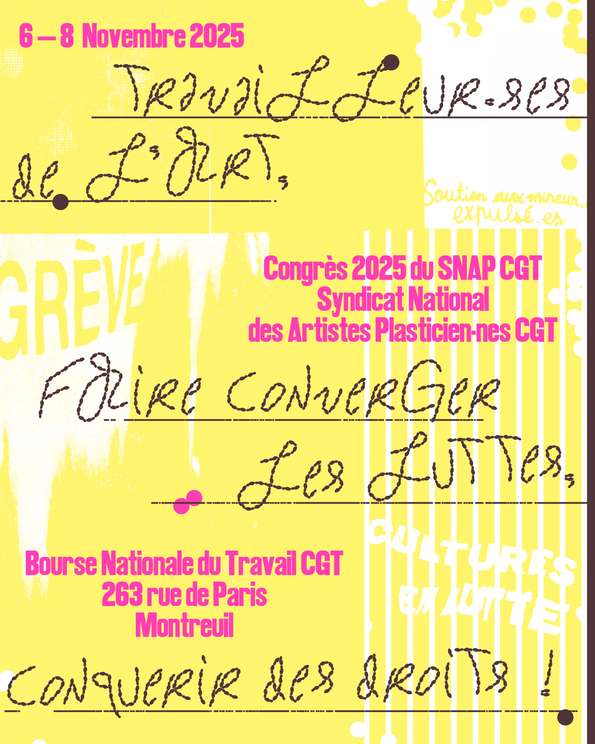 Du 6 au 8 novembre 2025, le Syndicat National des Artistes Plasticien·nes CGT organise son Congrès à la Bourse Nationale du Travail à Montreuil.